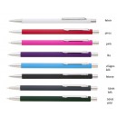 ÚJ gravírozható alumínium golyóstoll. Különleges finom puha gumírozott felülettel. Letisztult design, 6 színben (fehér, szürke, fekete, királykék, pink, lila. fényes króm kiegészítőkkel /klipsz, nyomógomb, tollcsúcs. Tollbetét cserélhető x20-as kék írás színben, nyomógombos mechanika. Anyaga: aluminium. Méret: 138 x 9 mm. Súly: 11g.
