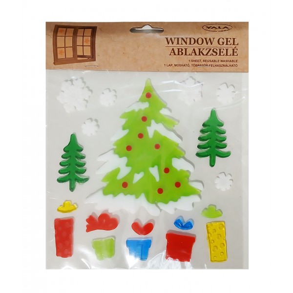 Ablakzselé Havas fenyő ajándékokkal (25x20cm) 312763