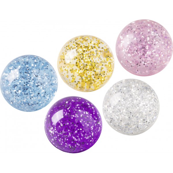 Csillámos gumilabda. Átmérő: 4cm. 5 különféle színben, a szín nem választható, vegyesen szállítjuk.