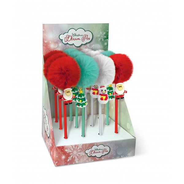 Golyóstoll 3 különféle karácsonyi mintával, és 8 cm átmérőjű pompommal. 12 db/display