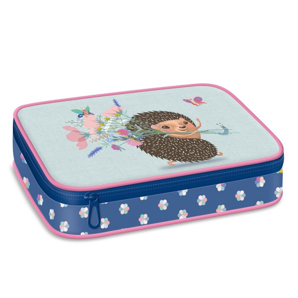 Többszintes, töltetlen, cipzáras tolltartó. Belül textillel bevont merev lapokkal, gumis kialakítással az írószerek tárolásához. Ceruzatartók: 30 db. Radírtartó: 4 db. Extra: plusz zseb további írószereknek. Méret: 155 x 225 x 45 mm.
