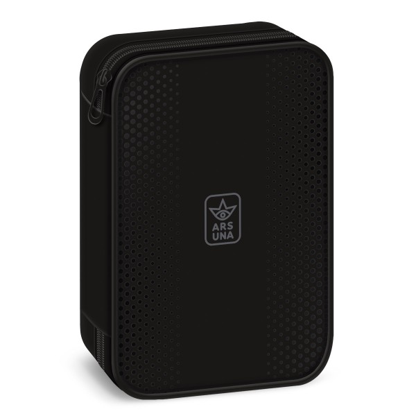 Többszintes, töltetlen, cipzáras tolltartó. Belül textillel bevont merev lapokkal, gumis kialakítással az írószerek tárolásához. Ceruzatartók: 30 db. Radírtartó: 4 db. Extra: plusz zseb további írószereknek. Méret: 155 x 225 x 45 mm.