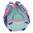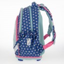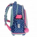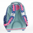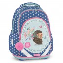 Hátizsák formájú iskolatáska, amely ideális kisiskolásoknak. Ergonómikus kialakítású, vízlepergető anyagból készült, szellőztető barázdákkal teli és műanyag merevítésű hátkiképzéssel. Puha, méretre állítható vállpántokkal, amelyekekkel szabályozható, hogy mennyire álljon feszesen a gyerek hátához simulva a táska. A hátizsák három nagy cipzáras rekesszel rendelkezik,az elsőben a táska mintájával megegyező órarend található műanyag tartóban. Oldalán két gumis zsebbel a kulacs részére. Alja megerősített textilből készült. Fényvisszaverő elemekkel elől és a vállpántokon. Tetején fogantyúval. Mérete: 340 x 400 x 210 mm. Súlya: 0,75 kg. Táska űrtartalma: 24 l. Terhelhetőség: 10 kg-ig. 3 év garancia.