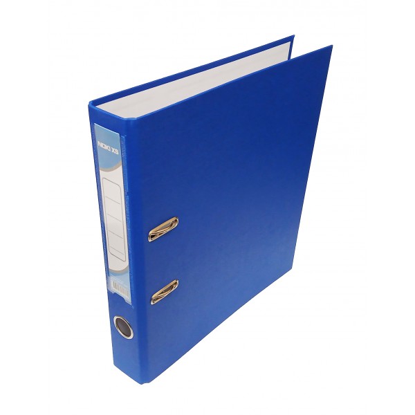 Magyar gyártású emelőkaros iratrendező, kívül műanyag, belül papír bevonat, cserélhető címkével, kihúzólyukkal.