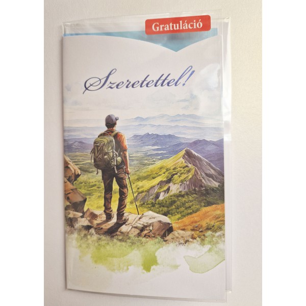 Képeslap 7 ARGUS 15-6589 Szeretettel! Túrázó férfi a hegy tetején