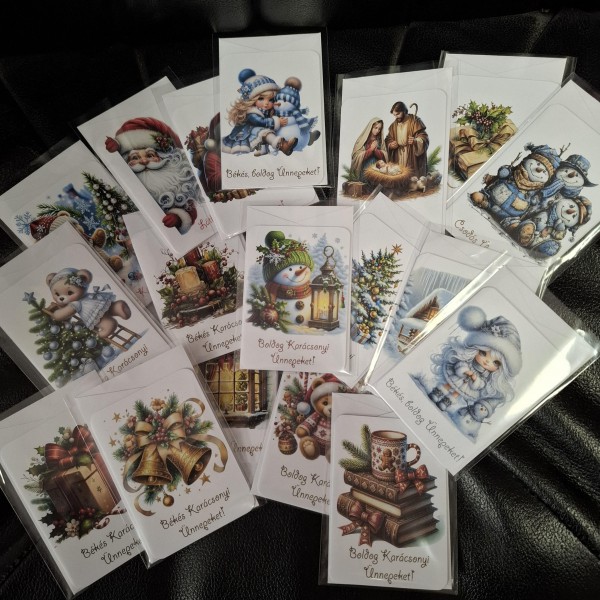 Ajándékkísérő kézműves PT. 7x10 cm borítékkal vegyes karácsonyi mintával