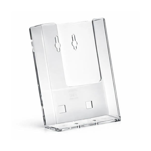 Prospektustartó, 1/3 A4, fali 1/3 A4 méretű mini katalógusok, brossúrák kihelyezésére kínáljuk ezt az univerzális terméket. Könnyedén falra szerelhető a kialakított furatoknak köszönhetően; ugyanakkor asztalra, pultra is állítható, hiszen tartozik hozzá egy támaszték is. Javasoljuk forgalmas ügyfélvárókba, de akár szállodákba, éttermekbe is. / asztali. Belső méret: 107 x 143 x 32 mm