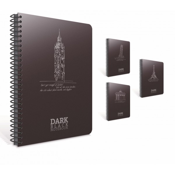 Spirálfüzet GIPTA Dark 17x24cm PP borítással 50 lapos sima 2673