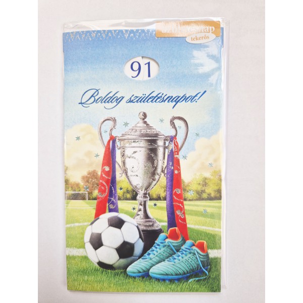 Képeslap 8 ARGUS 15-6605 Boldog születésnapot! Kupa focilabdával, cipővel. Tekerős