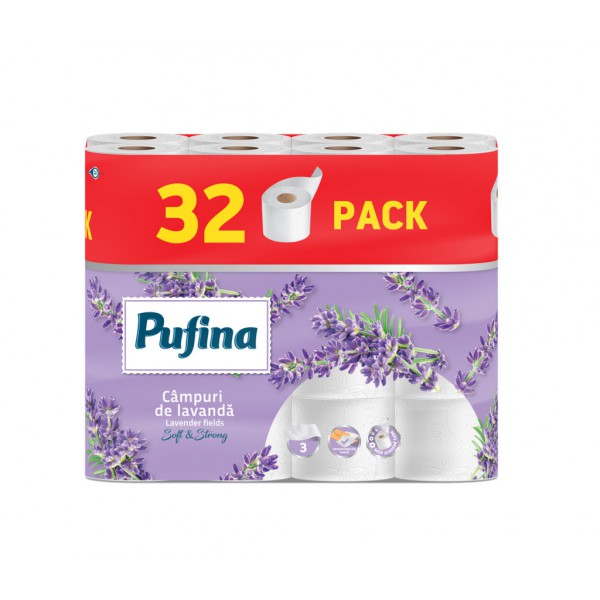 Eü.papír normál PUFINA 32 tekercs 3 rétegű levendula illatú (140lap/tek) lapméret:9,x12,5cm. Tekercs hossza:17,5méter
