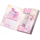 Kiváló minőségű kívül , belül nyomott karton gumis füzetboxok, különböző mintákkal. Belsejében órarend található. Mérete: 22,5 x 32 x 4,5 cm.
