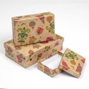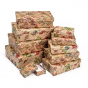 Kemény kartonból készült téglalap alakú díszdoboz különféle mintákkal 10 db egymásba rakható.Szettben áruljuk. Méretei: 1db: 8,5 x 6 x 2,8 cm, 1db: 10,5 x 7,6 x 3,2 cm. 1db 12,6 x 8,6 x 3,6 cm. 1db 14,6 x 9,6 x 4,2 cm. 1db 16,7 x 10,7 x 4,8 cm. 1db 18,6 x 11,7 x 5,3 cm. 1db 20,7 x 12,7 x 5,7 cm. 1db 22,4 x 14,4 x 6,3 cm. 1db 24,5 x 16,5 x 6,6 cm. 1db 26,4 x 17,6 x 7,3 cm.