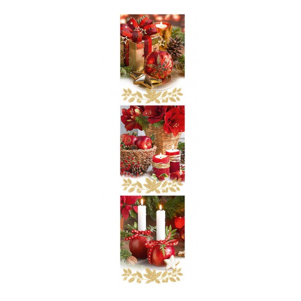 Ajándékkísérő ARGUS karácsonyi piros díszek,gyertyákkal 61-8023 (6db-os, csomagáras)