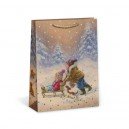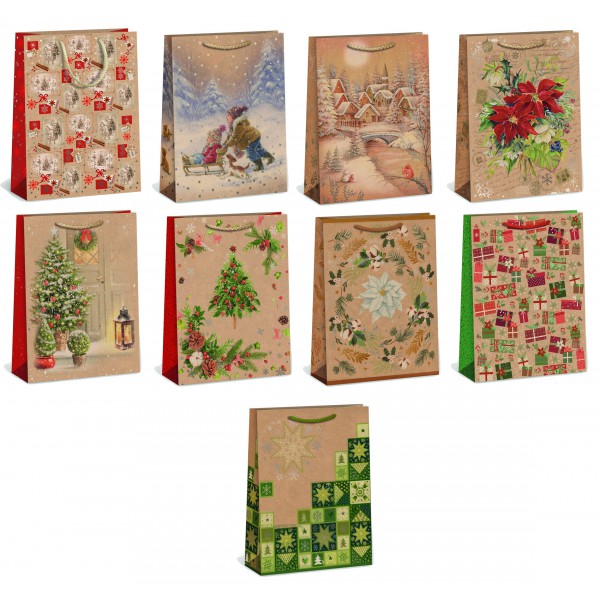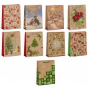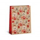 Vastag natúr papírból készült karácsonyi mintázatú dísztasak. Mérete: 23,3 x 31,3 x 11 cm.