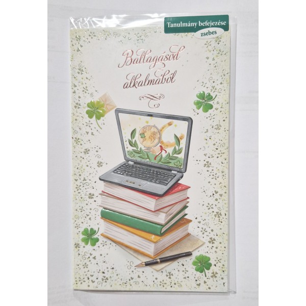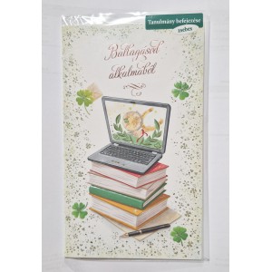 Képeslap 8 ARGUS 18-6010 Ballagásod alkalmából! Könyvek tetején laptop. Zsebes