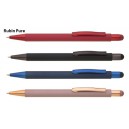 Rubin Pure fém testű, alumínium nyomógombos gravírozható golyóstoll, gumírozott felülettel és kék tollbetéttel. Speciális bevonatának köszönhetően kellemes írás komfortot bíztosít. A toll csúcsa és klipsze elegánsan fényes kialakítású, a toll testével azonos színben.