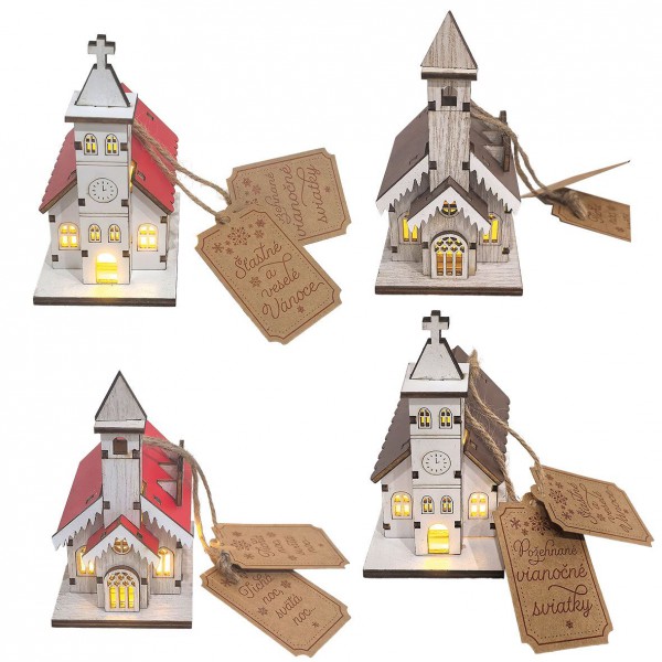 Karácsonyi dísz ARGUS templom, LED világítással (24db/disp) db/ár 2343-001,002