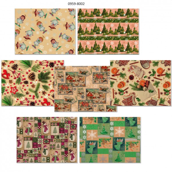 Díszcsomagoló ARGUS (70x100) tekercses natúr kraft karácsonyi mintás (2ív/tek/70 tek/dob) 0959-003, 0004, 0005 mix