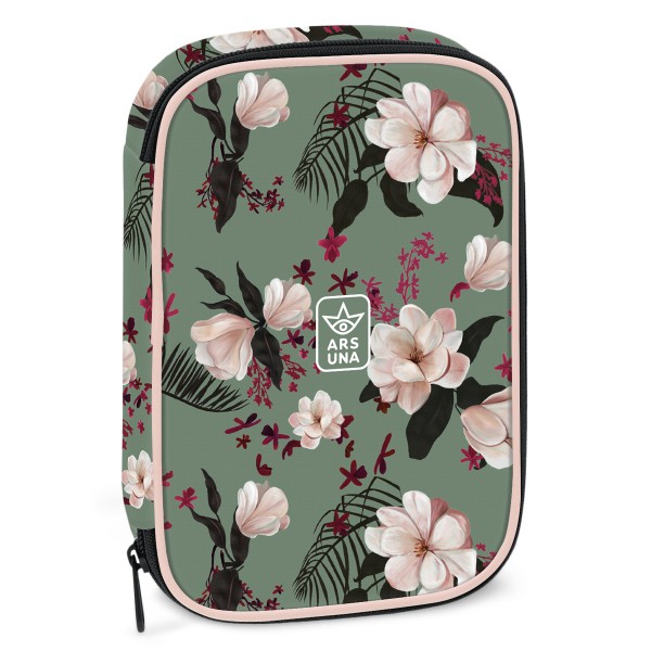 Többszintes, töltetlen, cipzáras tolltartó. Belül textillel bevont merev lapokkal, gumis kialakítással az írószerek tárolásához. Ceruzatartók: 30 db. Radírtartó: 4 db. Extra: plusz zseb további írószereknek. Méret: 155 x 225 x 45 mm.