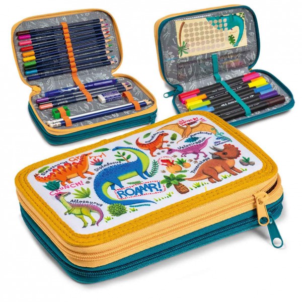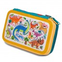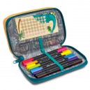 2 emeletes töltött tolltartó. Tartalma: 13db aquarell ceruza, 2 grafitceruza radírral, 1 hegyező, 1 radír, 10db kétvégű filctoll, 1db 15cm-es vonalzó, 1 órarend. Mérete: 20 x 12,5 x 4cm.