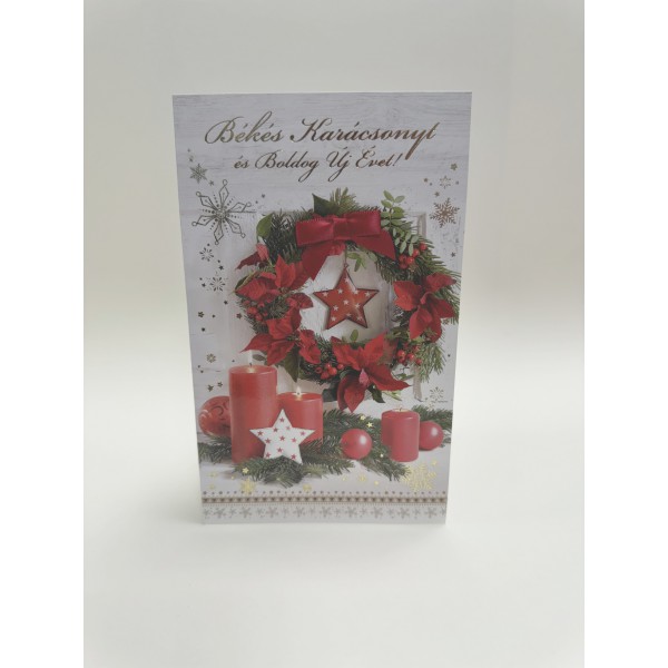 Képeslap 7 ARGUS 11-6462 Békés Karácsonyt és B.Ú.É.K. Piros gyertyák mikulásvirág koszorúval Kifutó!