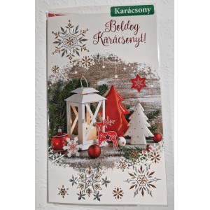 Képeslap 6 Argus karácsonyi 11-6555 Boldog karácsonyt! lámpás piros-fehér fenyőfákkal