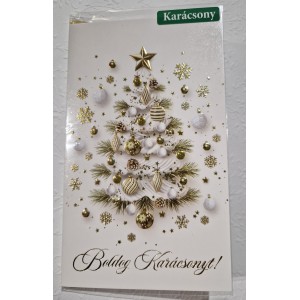 Képeslap 6 Argus karácsonyi 11-6569 Boldog karácsonyt! fehér fenyőfa, arany díszekkel.