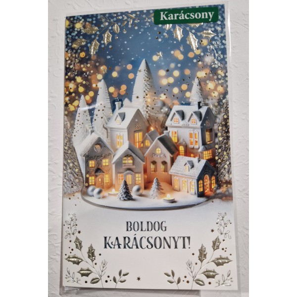 Képeslap 7 Argus karácsonyi 11-6557 Boldog karácsonyt! havas városka kék háttérrel