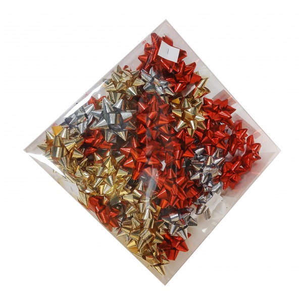 Fényes masni vegyes színben , átmérő: 45mm. Egy zacskóban 4db masni található, egy displayben 32csomag masni található.