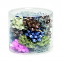 Különböző metál matt anyagában mintás masni 90mm-es méretben. Egy csomagban 35db található vegyes színben.