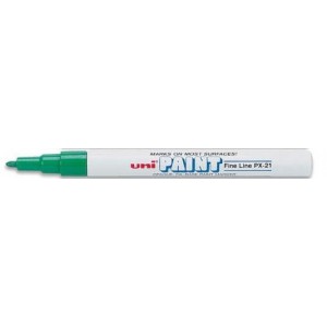 Műanyag testű, kerekített csúccsal ellátott marker permanent, lakkszerűen fedő festékkel töltve üveg, kerámia, műanyag, fém, illetve szinte minden felület jelölésére, díszítésére alkalmas gyorsan száradó festék írásképe törlés-, víz-, fény- és hőálló. Írásszín: kék. Vonalvastagság: 2-4 mm