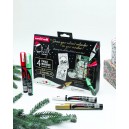 Folyékony krétamarker készlet dekorálásra. A tradicionális készlet tartalma: 1-1 db arany, fehér, piros, metál zöld UNI PWE-5M krétamarker. 2 db A/3-as méretű karácsonyi sablon. Hegyvastagság: 1,8 - 2,5 mm.Kerek hegy, víz alapú tinta.