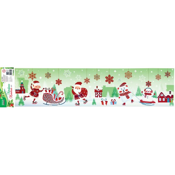 Ablakmatrica glitteres, karácsonyi motívummal. Méret: 64x15cm, 4 klf. Matricát tartalmazó lap.
