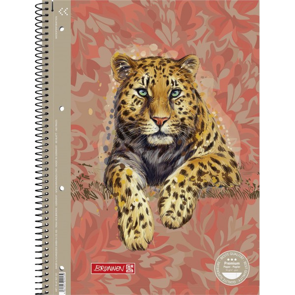 Spirálfüzet BRUNNEN A/4 80lap 90g perforált lyukasztott vonalas Safari World Leopárd 1067927221