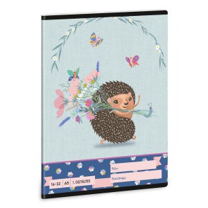A/5-ös méretű, vonalas füzet 1. osztályos szabványos vonalazással. 32 lapos, belseje 75 gr-os papírból. Borítója 250 gr-os műnyomó kartonra lekerekített sarkokkal, fényes fóliázással, 4 szín nyomással készült.