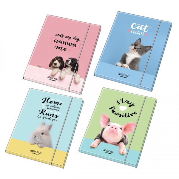 A/4 karton gumis mappa 4féle kisállat mintával, vegyesen csomagolva. Mérete: 26 x 35 x 1,2cm.