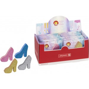 3 x 4cm-es magassarkú cipő alakú csillámos radír. 4 féle színváltozat.
