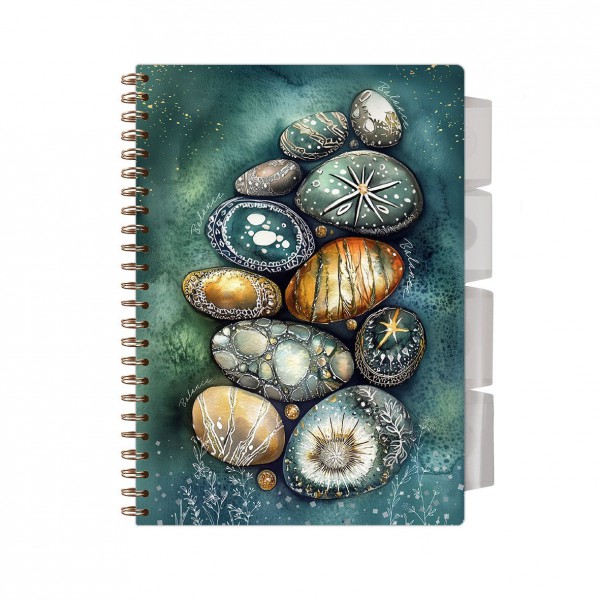 Spirálfüzet ARGUS A/5 műag.elválasztóval, peforált vonalas PVC fedelű 100 lapos Festett kavicsok 1546-0430