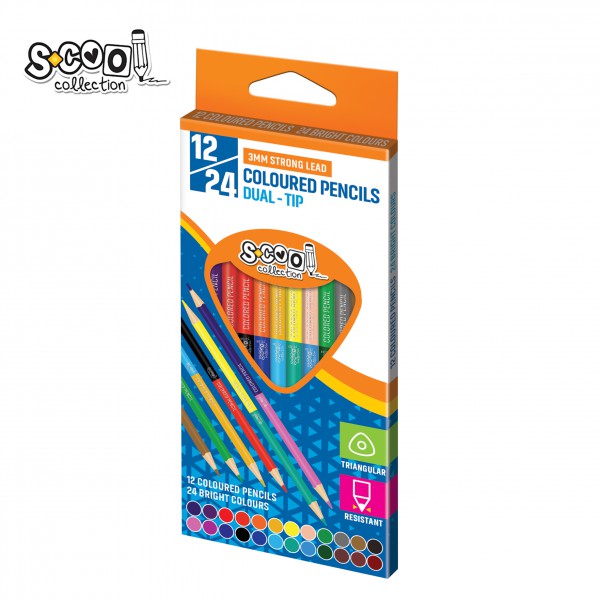 Színes ceruza 12/klt School Collection kétvégű háromszög színes test SC3235