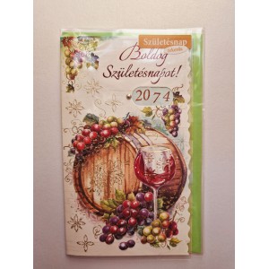 Képeslap 9 ARGUS 15-6602 Boldog születésnapot! Boroshordó pohárral, szőlővel. tekerős