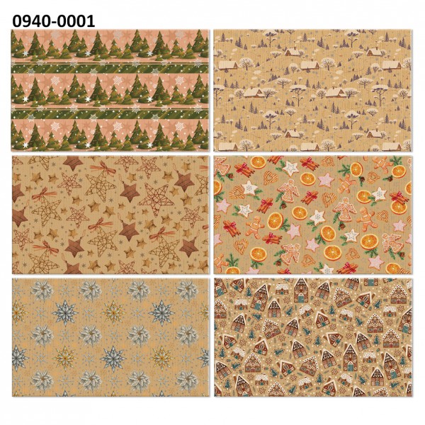 Díszcsomagolópapír ARGUS (70x200) natúr kraft vegyes ,karácsonyi mintával 2mx1ív/tek 60 tek/dob 0940-0001