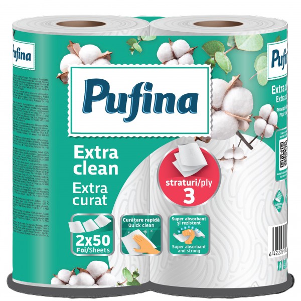 Kéztörlő tekercses PUFINA 2 tekercs 3 rétegű (50lap/tek)