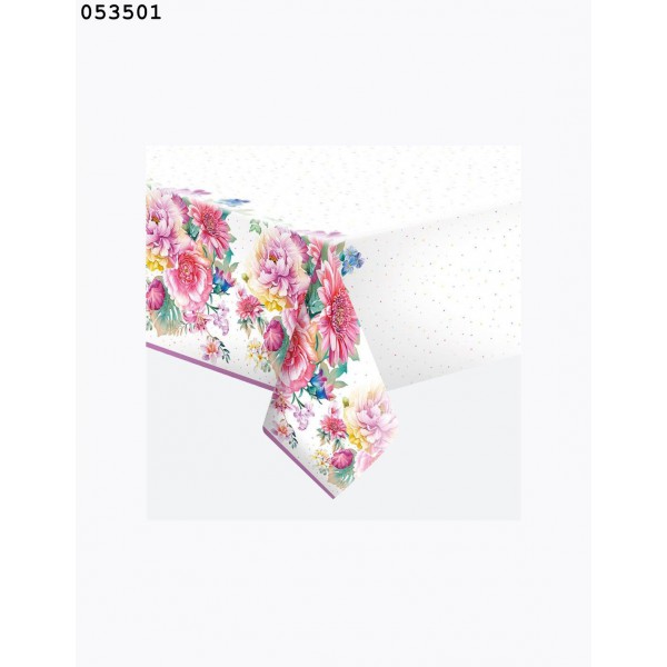 Terítő POLMAK (120x180cm) papír letörölhető 058301/053501 fehér alapon virágpöttyök, virágos szegéllyel